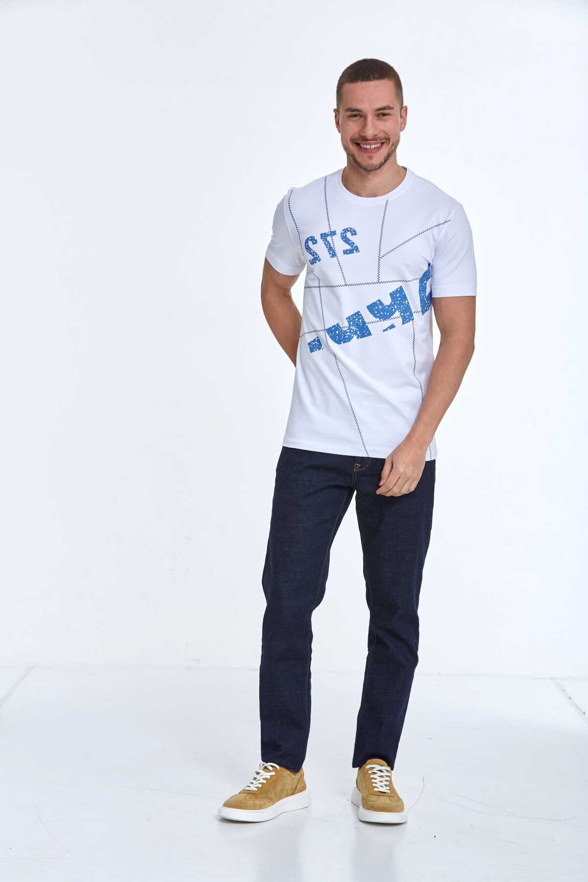 You can combine the product, which attracts attention with its asymmetrical print design, with your jeans. It is made of cotton lycra single jersey fabric for those who like casual wear. With its breathable texture, it gives a feeling of comfort to those who wear the t-shirt.