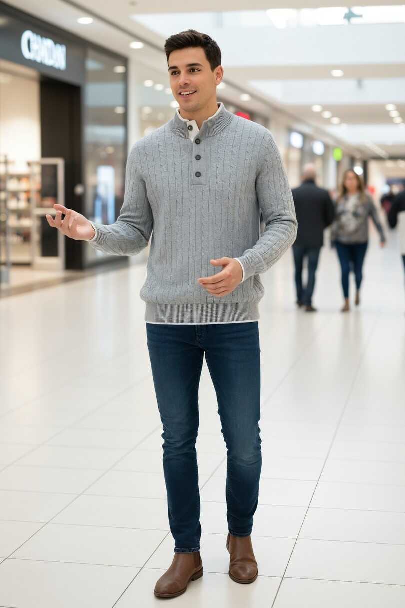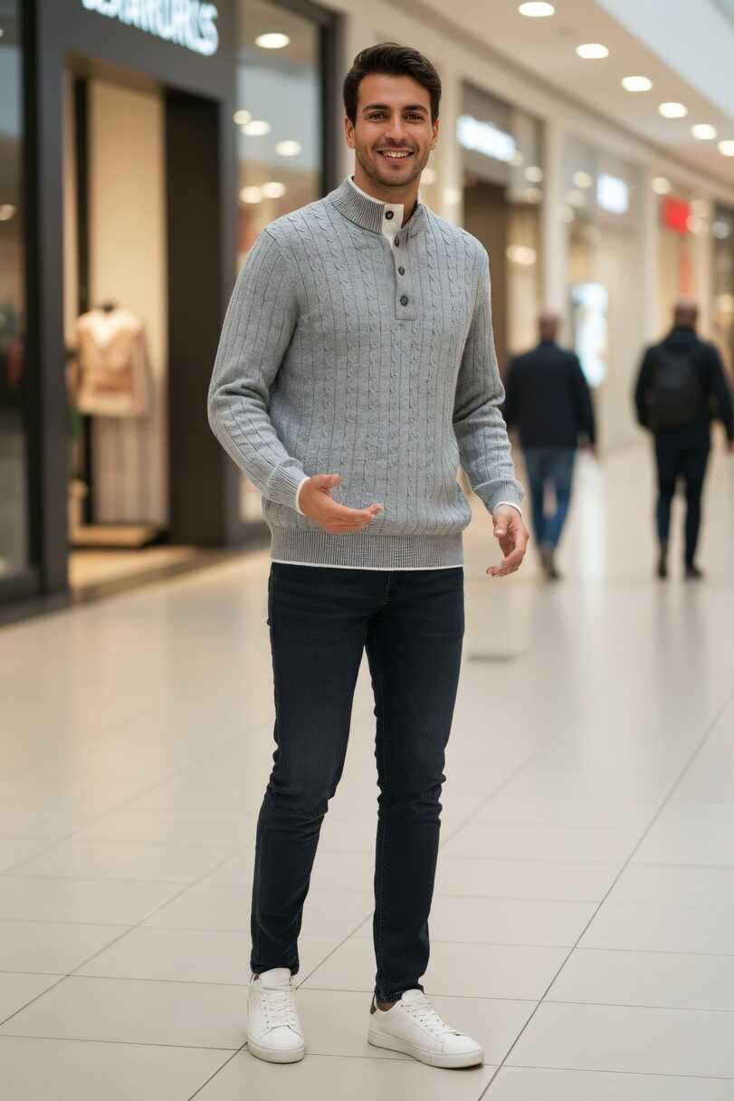 Ayon Gri Renk Düğmeli Yaka Saç Örgü Kaşmir Triko