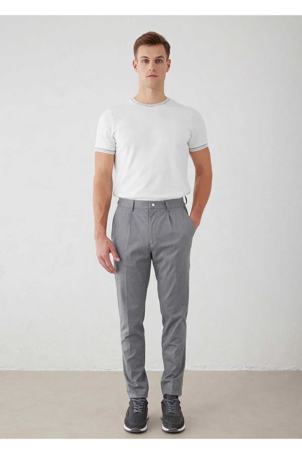 Lizbon Kırık Beyaz Renk Keten Karışımlı Chino Pantolon