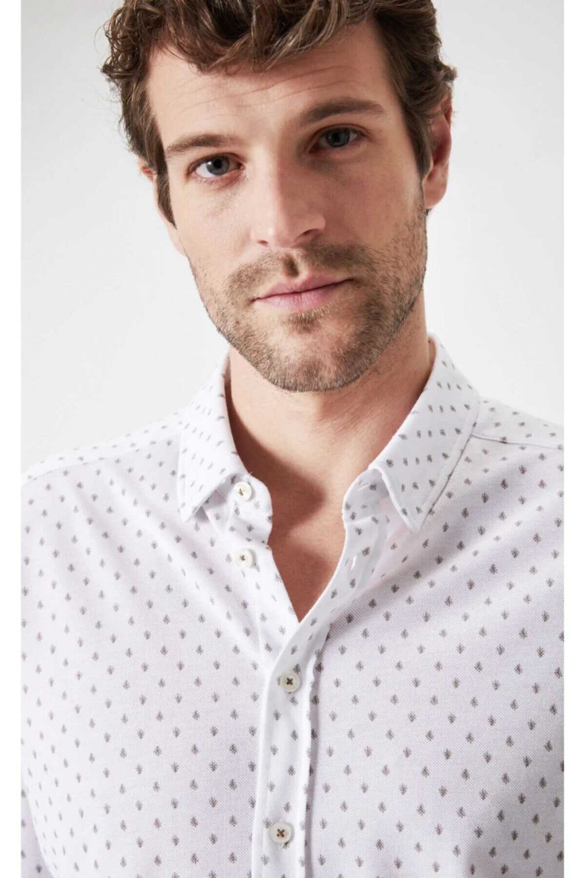 Camilo Erkek Mikro Desenli Örme Gömlek Beyaz