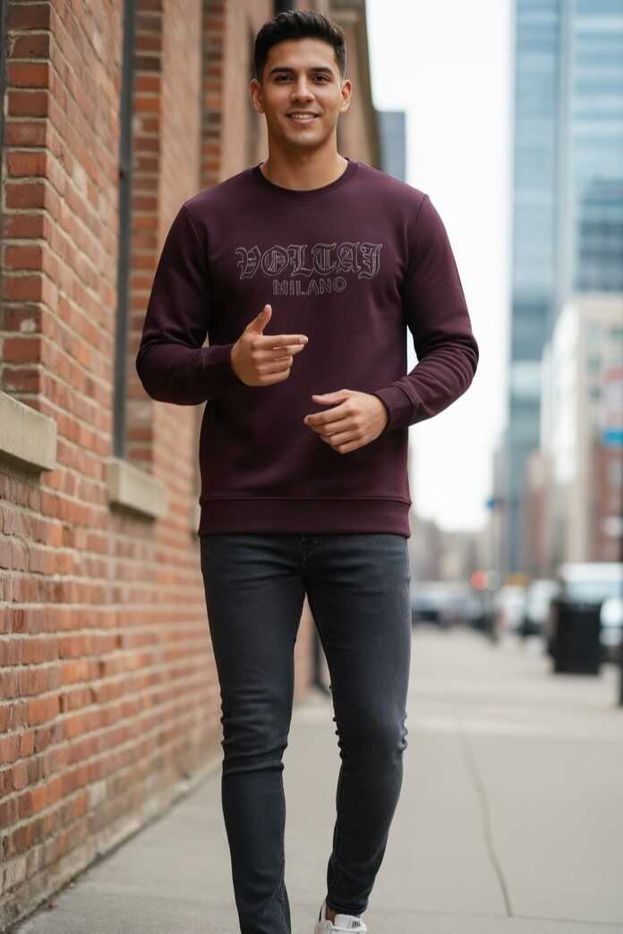 Cora Bisiklet Yaka Erkek Sweatshirt Bordo