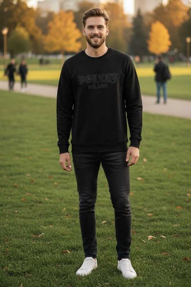 Vier Bisiklet Yaka Erkek Sweatshirt Siyah