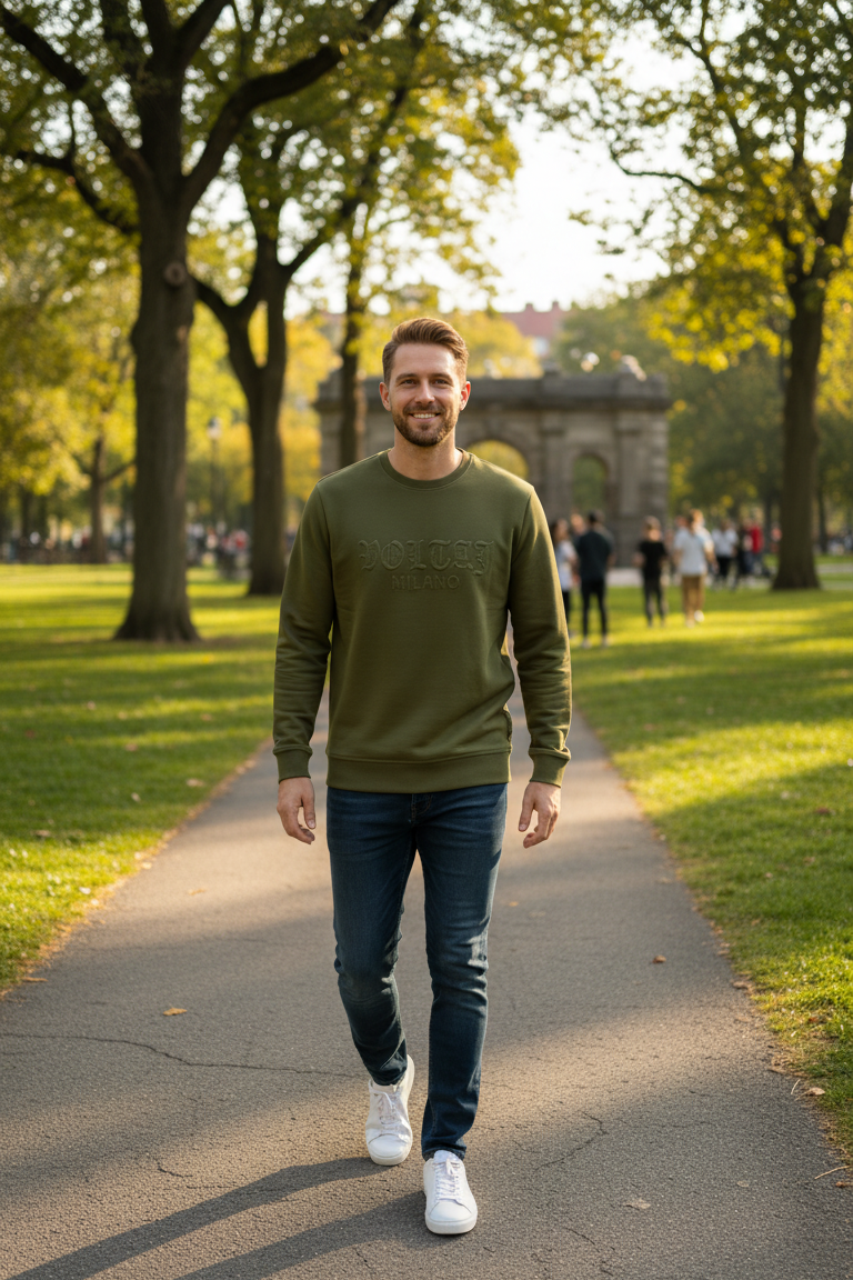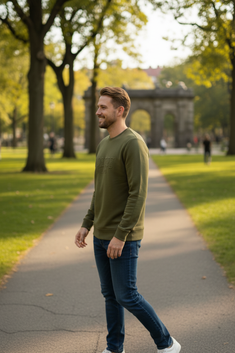 Cora Bisiklet Yaka Erkek Sweatshirt Yeşil