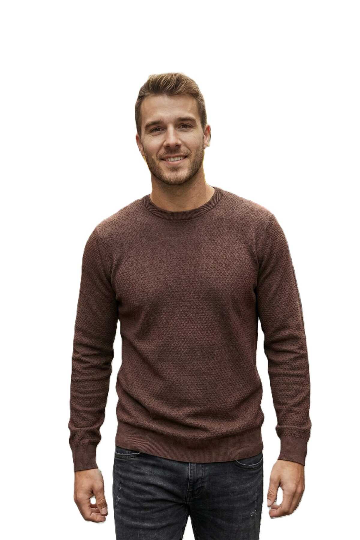 Daniel Bisiklet Yaka Erkek Triko Kazak Kahverengi