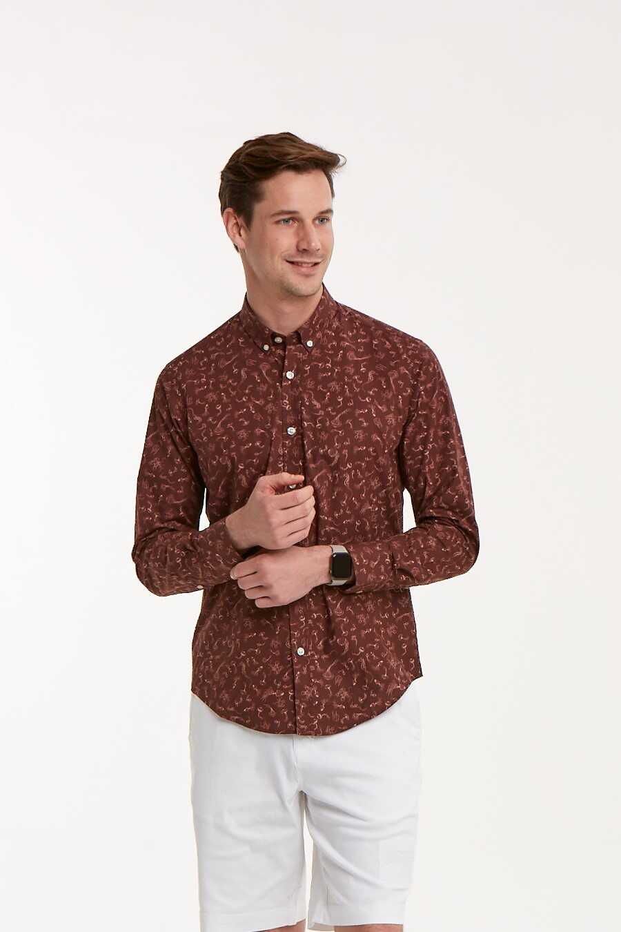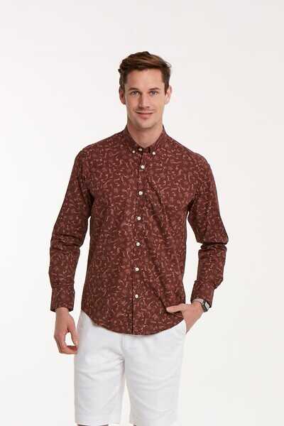 Deniz Atı Desenli Pamuklu Kahverengi Slim Fit Erkek Gömlek
