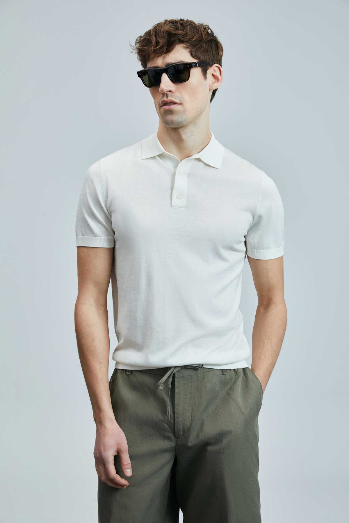 Derek Erkek İpek Karışımlı Kazak Kırık Beyaz - 1