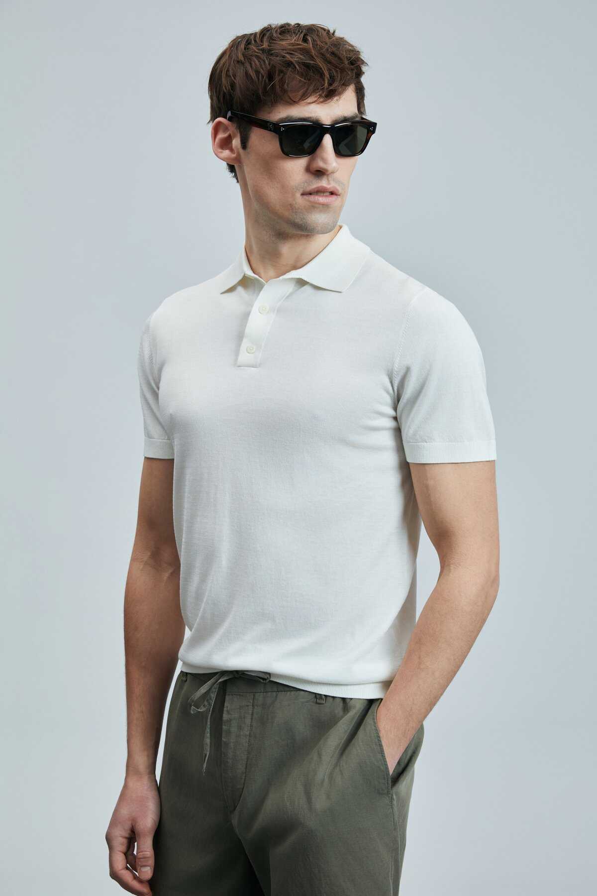 Derek Erkek İpek Karışımlı Kazak Kırık Beyaz