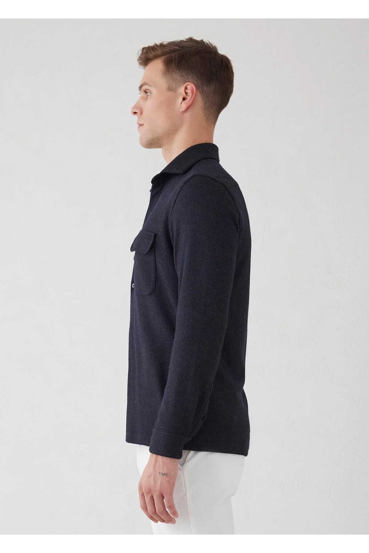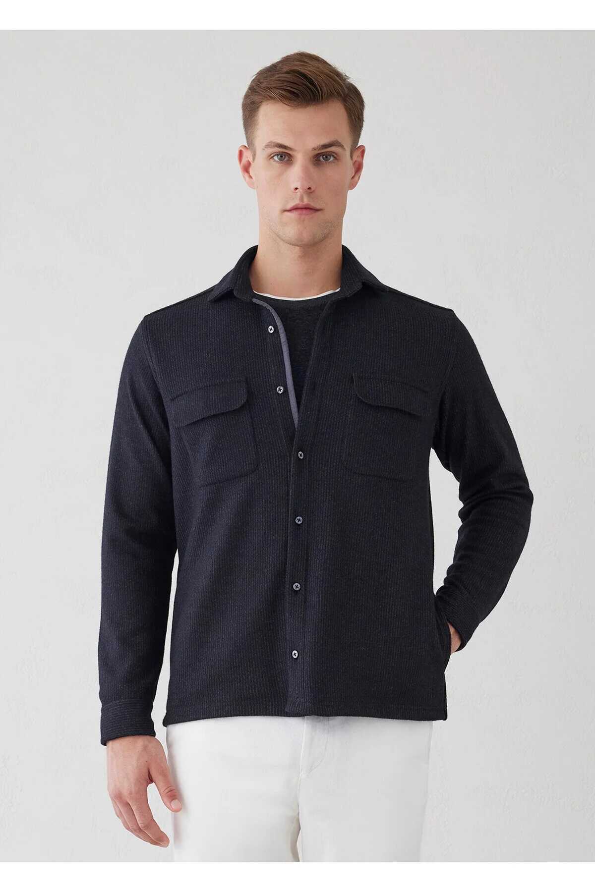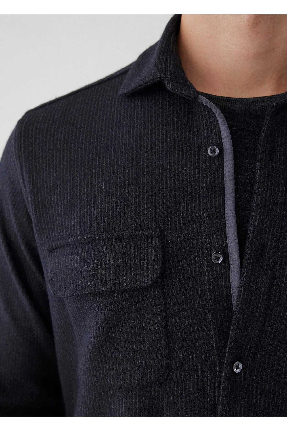 Endero Anthracite Color Striped Patterned Wool Blend Shirt