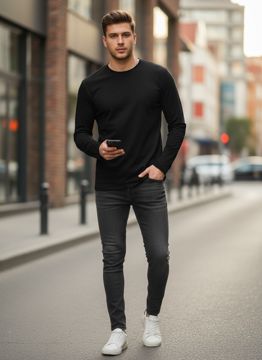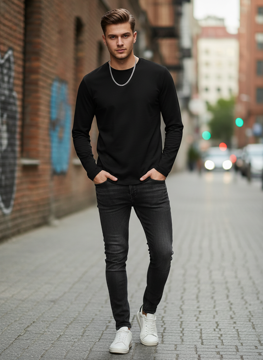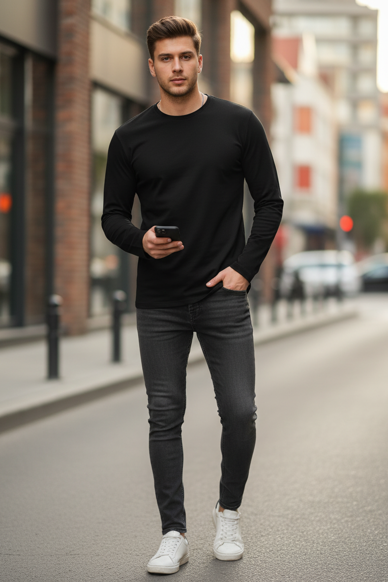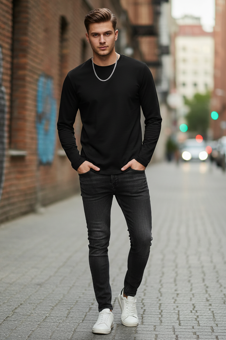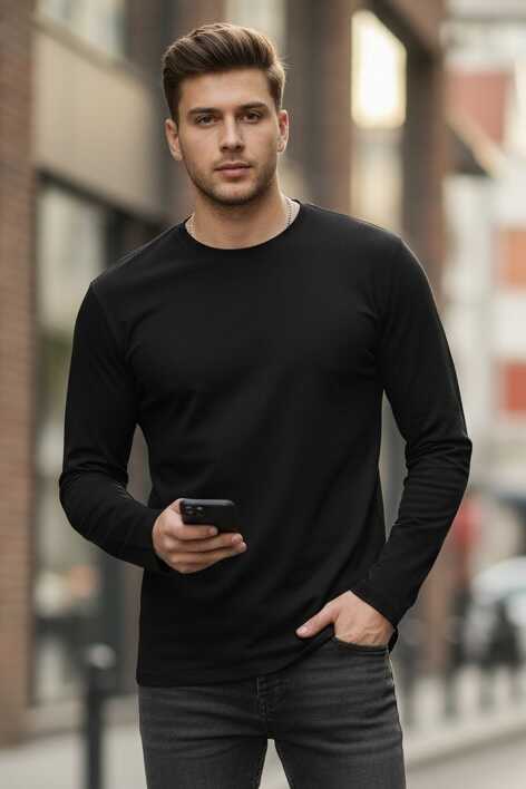 Vier Bisiklet Yaka Erkek Sweatshirt Siyah