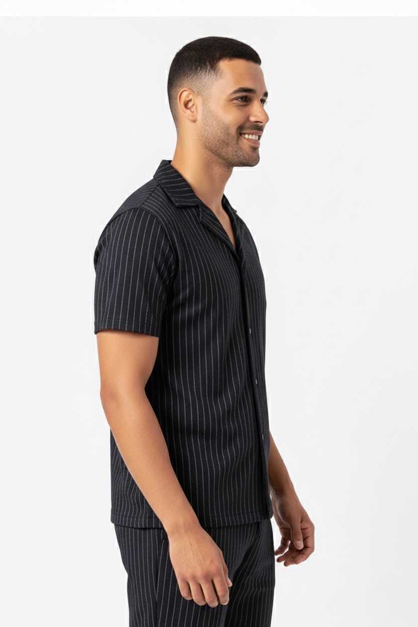 Donut Kısa Kollu Desenli Gömlek Antrasit