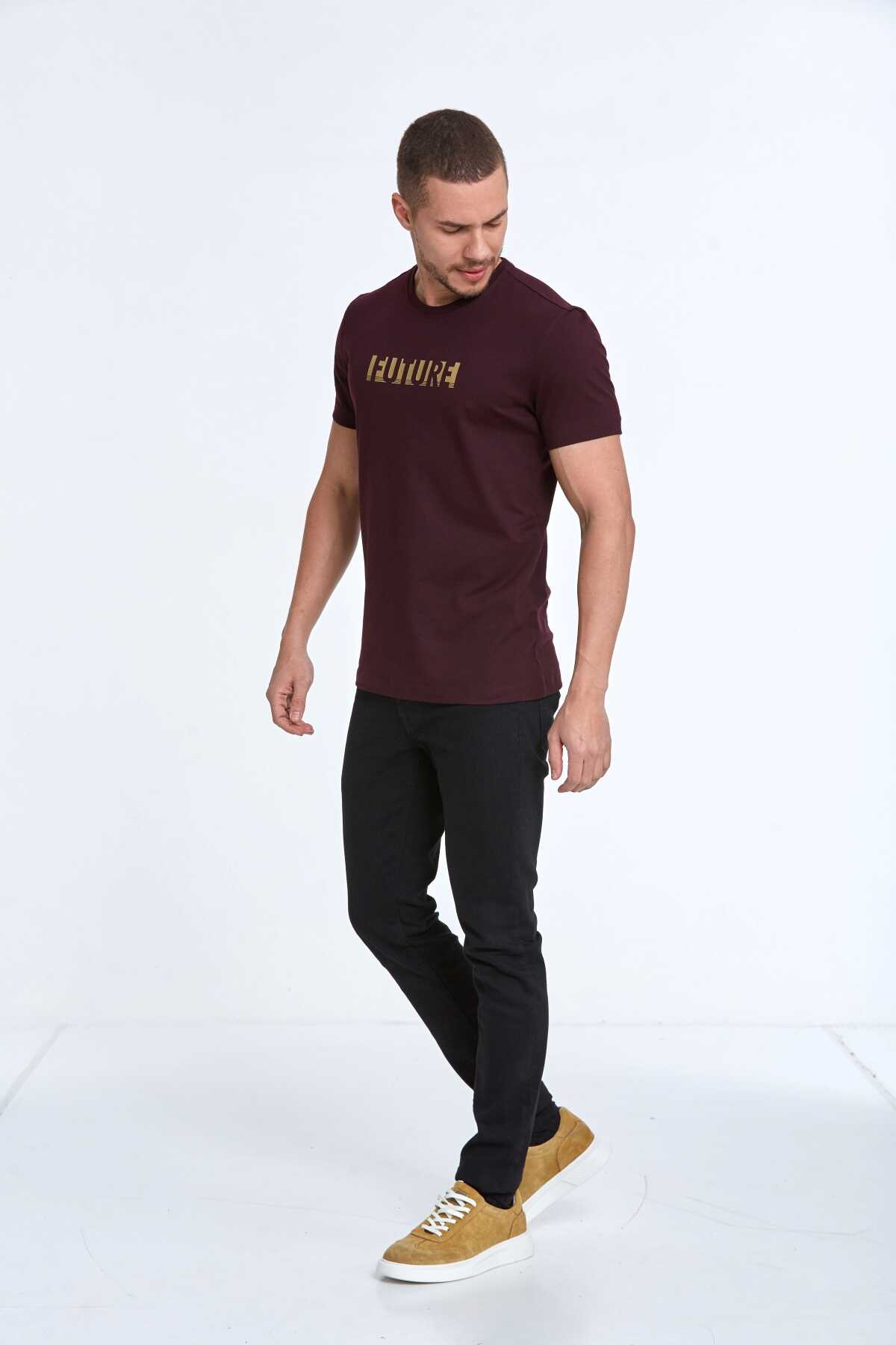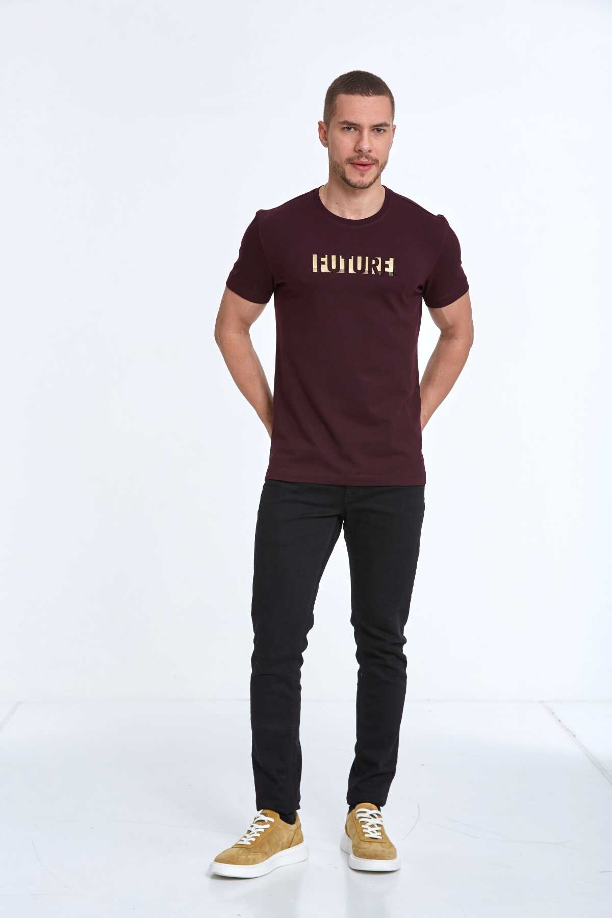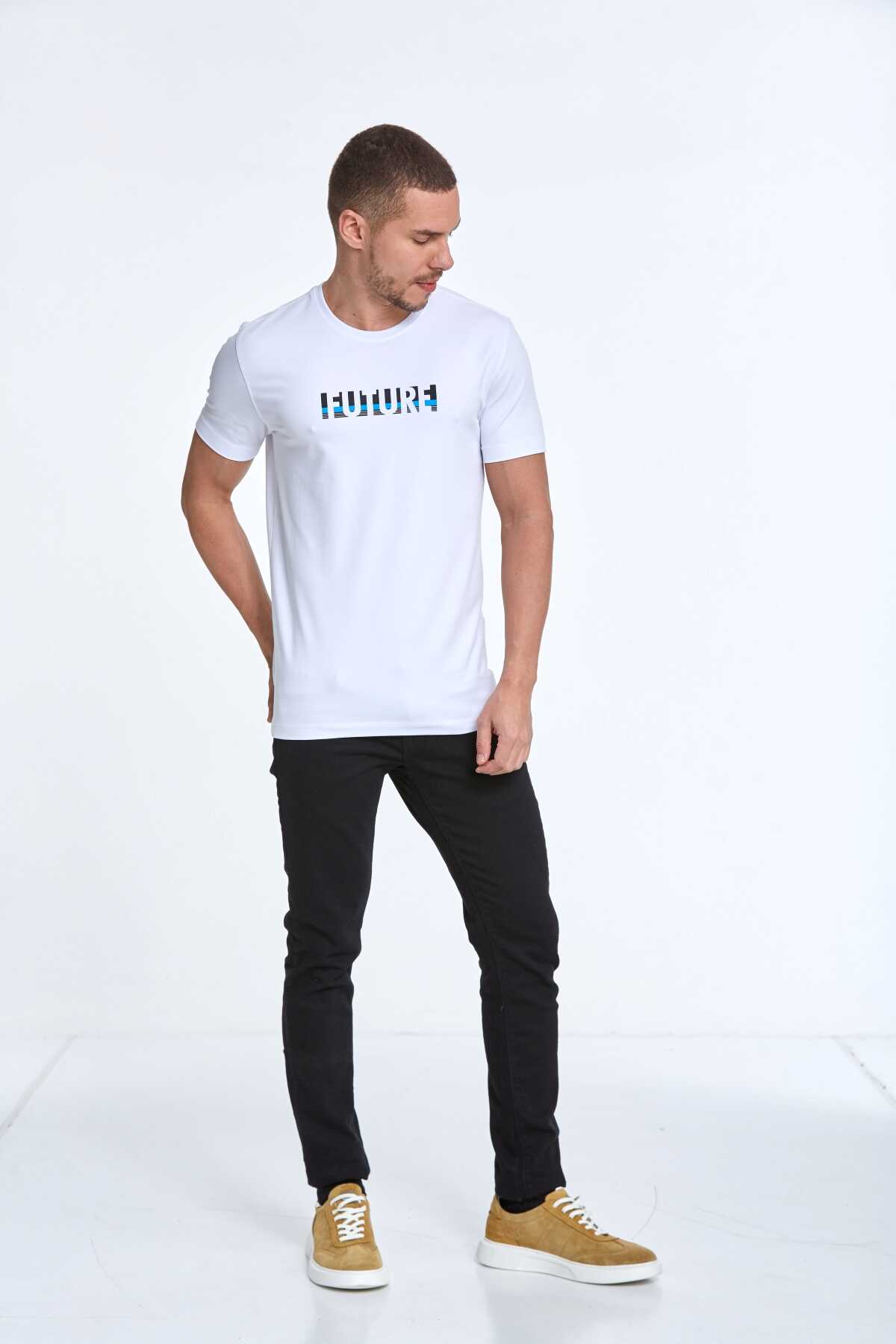 Future Baskılı Pamuklu Bisiklet Yaka Tişört