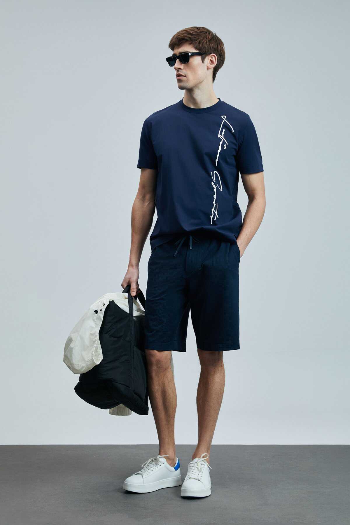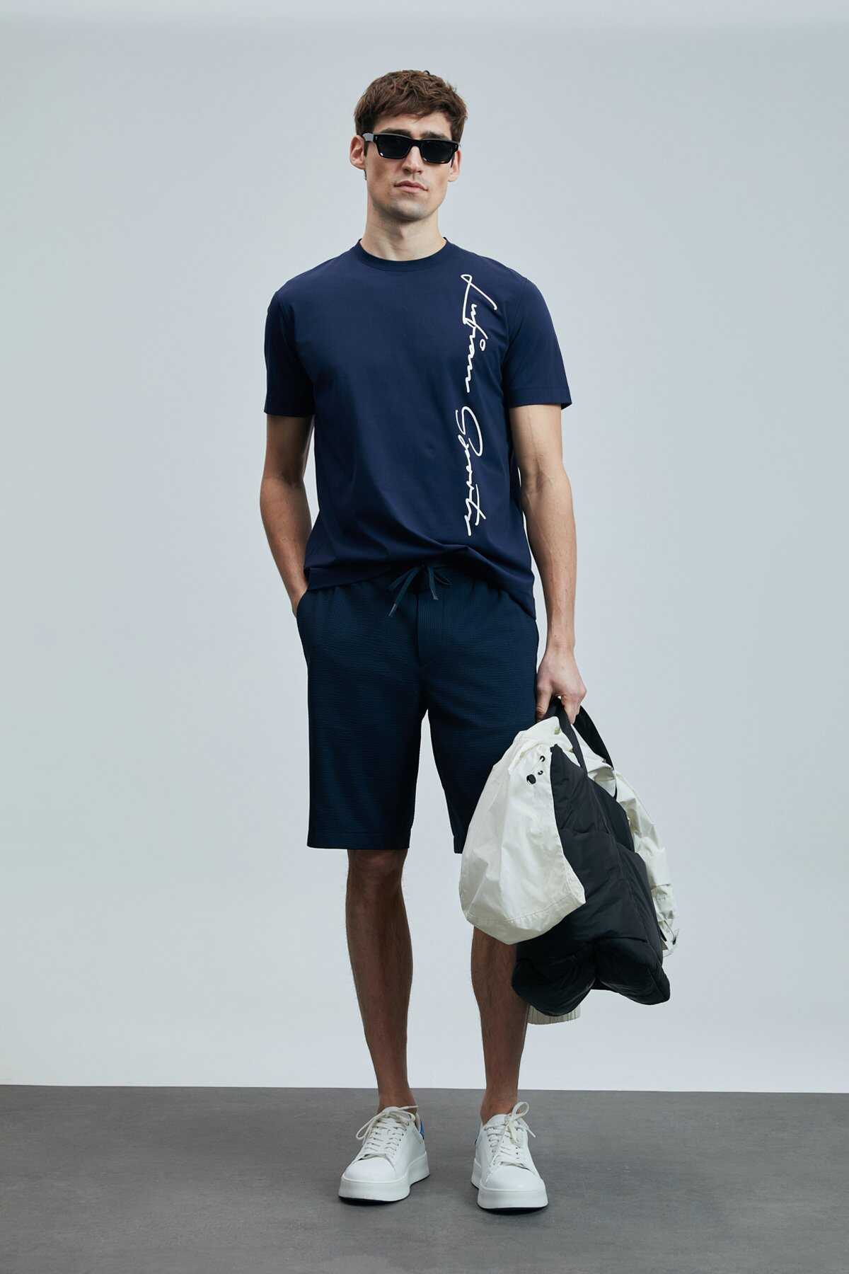 Justın Modern Grafik T- Shirt Açık Lacivert