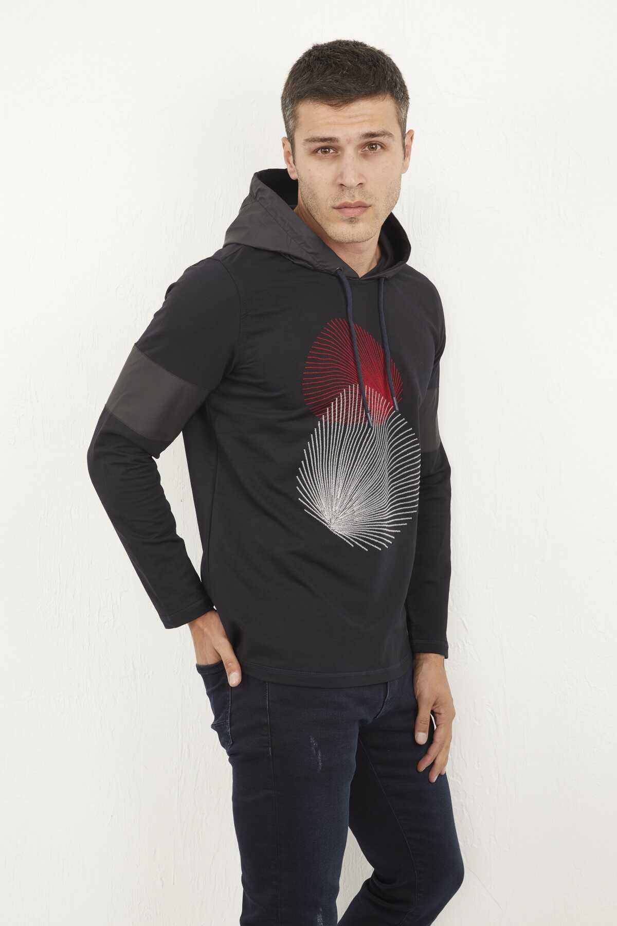 Kapüşonlu Baskılı Lacivert Sweatshirt