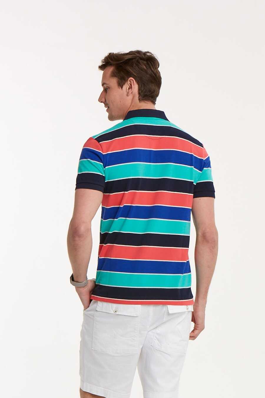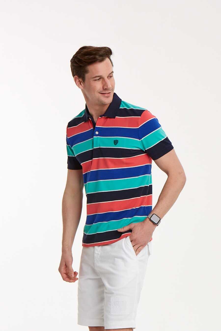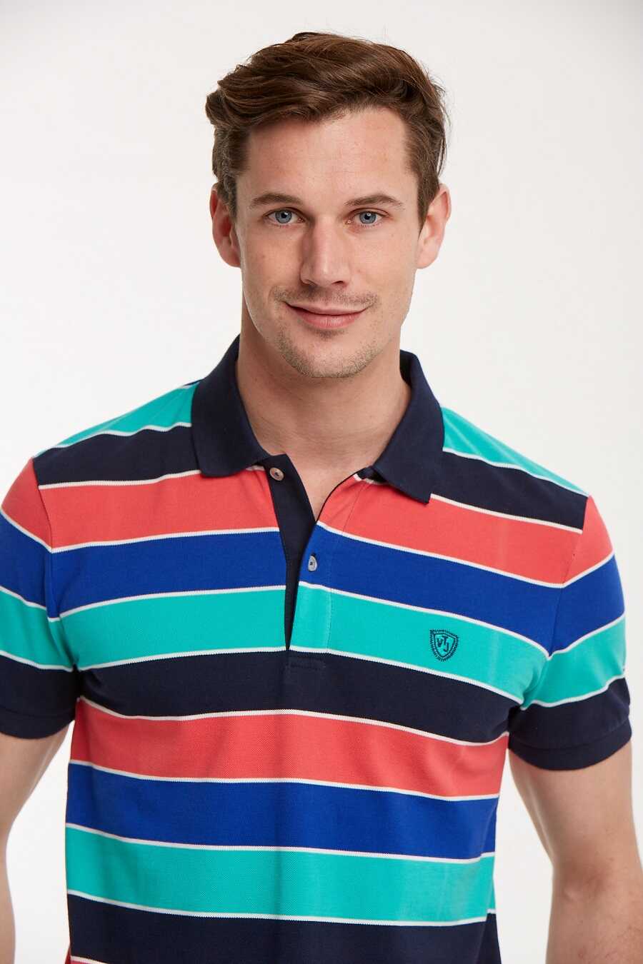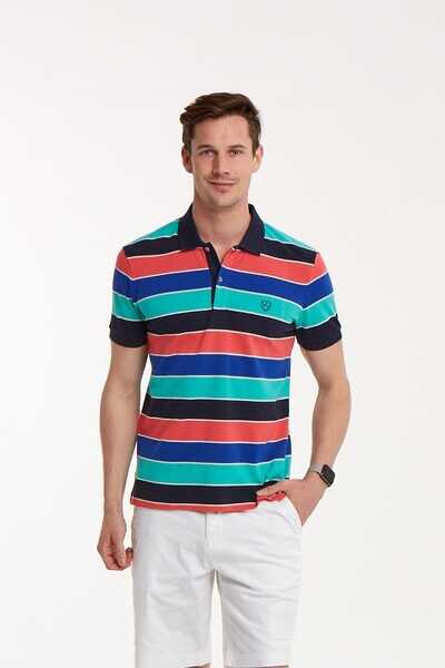 Lacivert Turuncu Saks Turkuaz Çizgili Polo Yaka Tişört