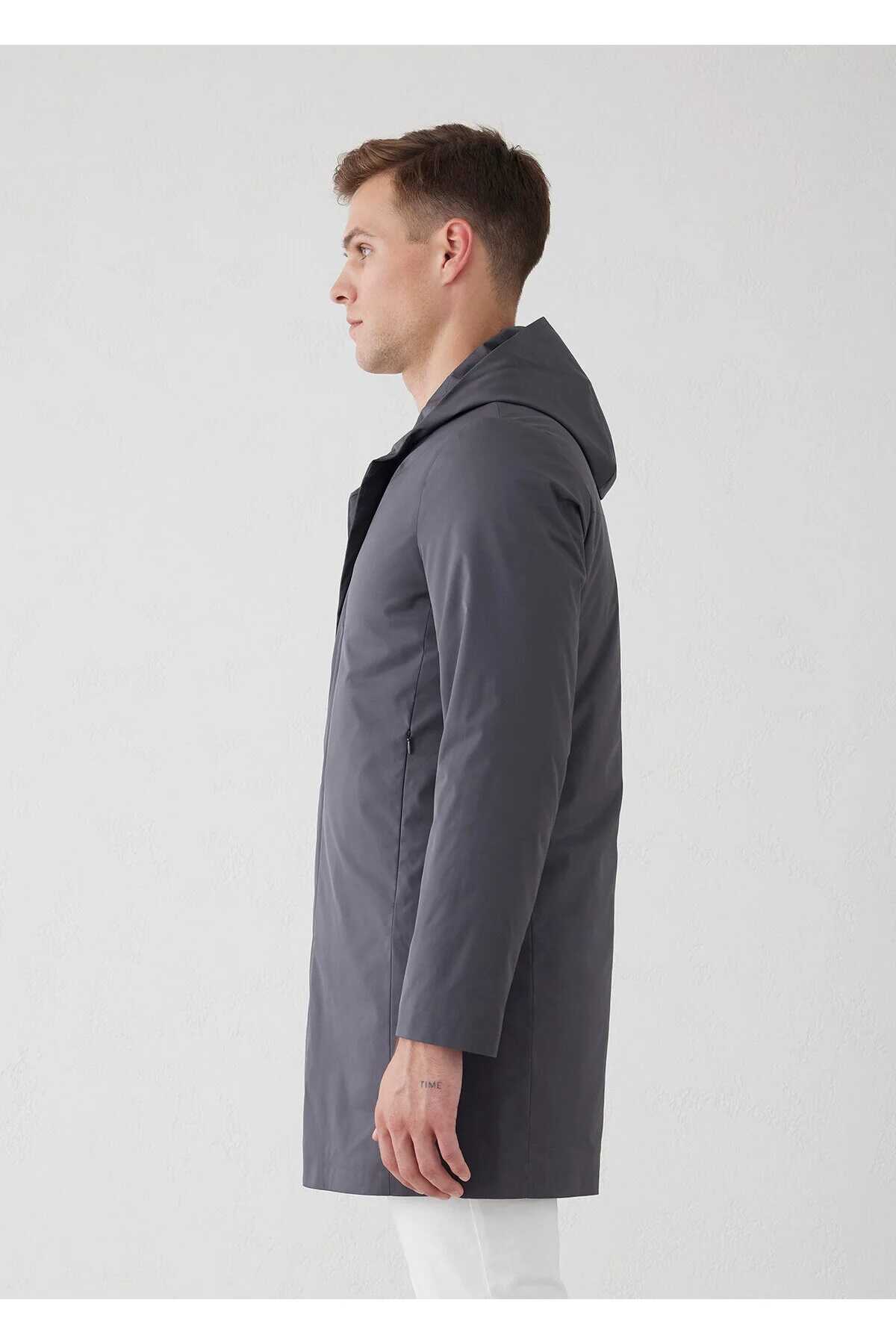 Talu Gri Renk Fermuarlı Kapüşonlu Mont
