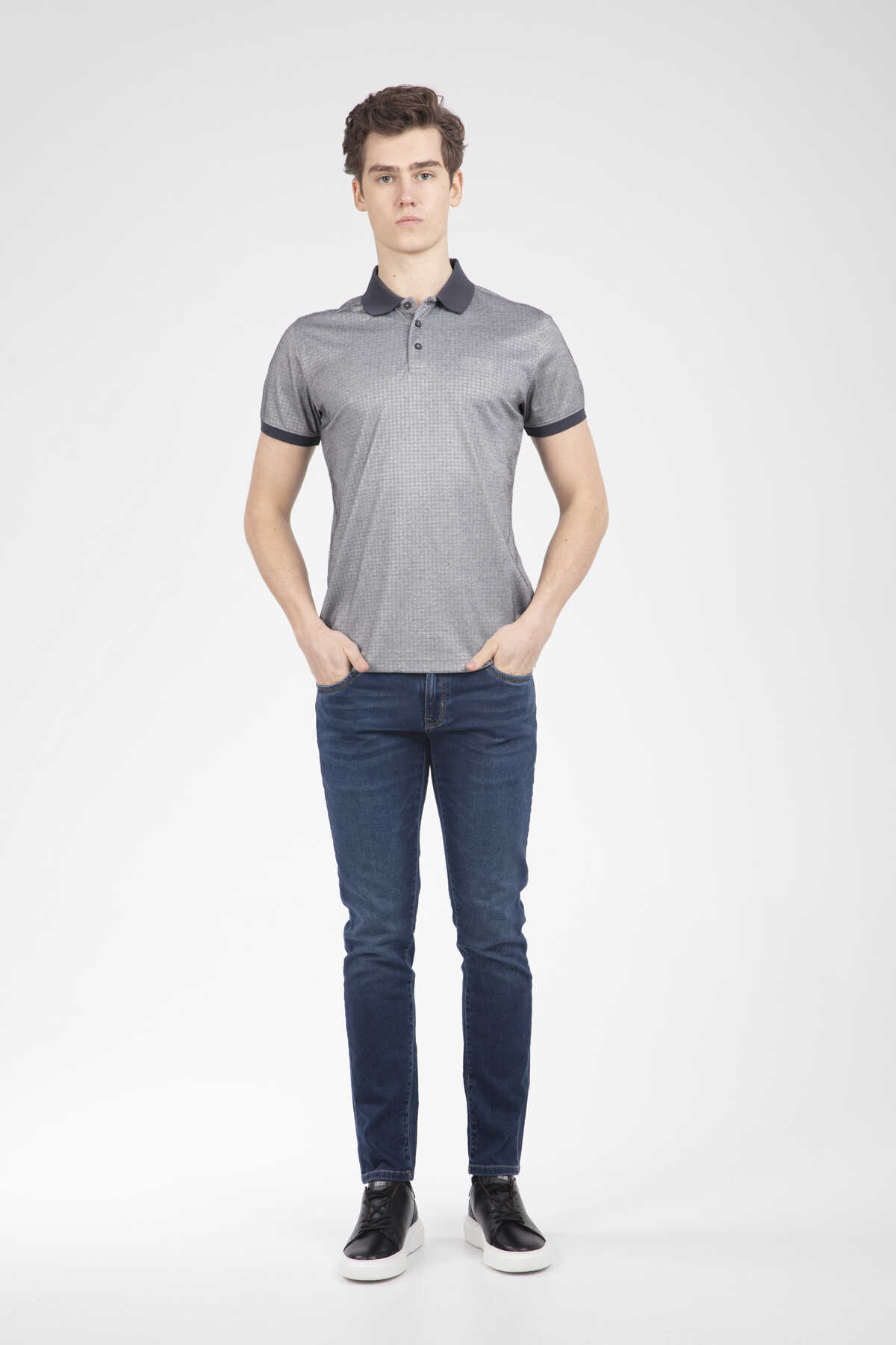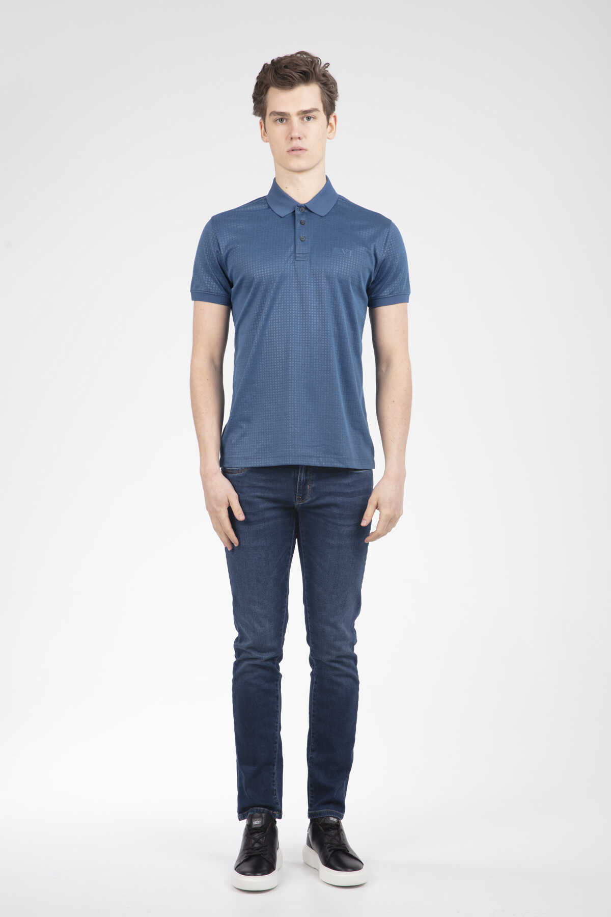 Line and VJ Printed Polo Neck Men's T-Shirt