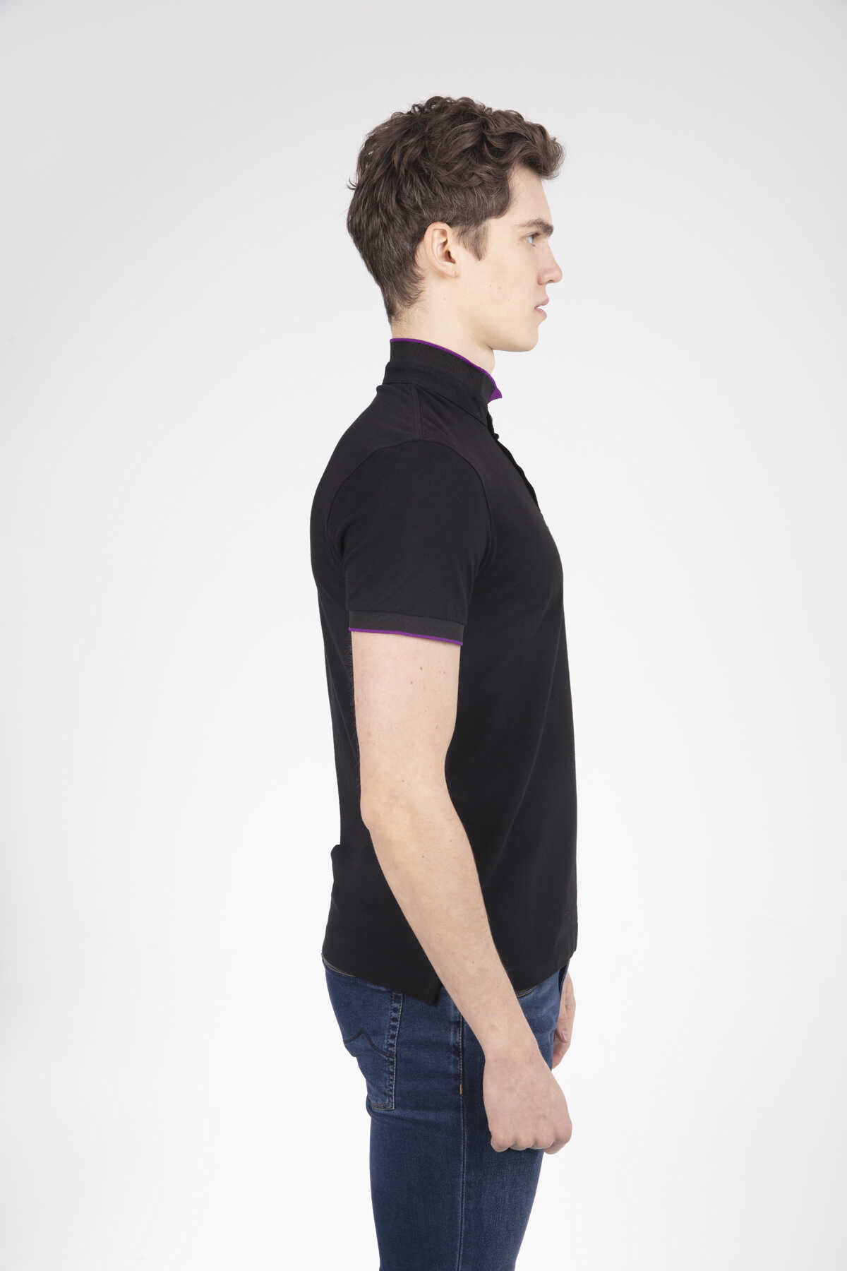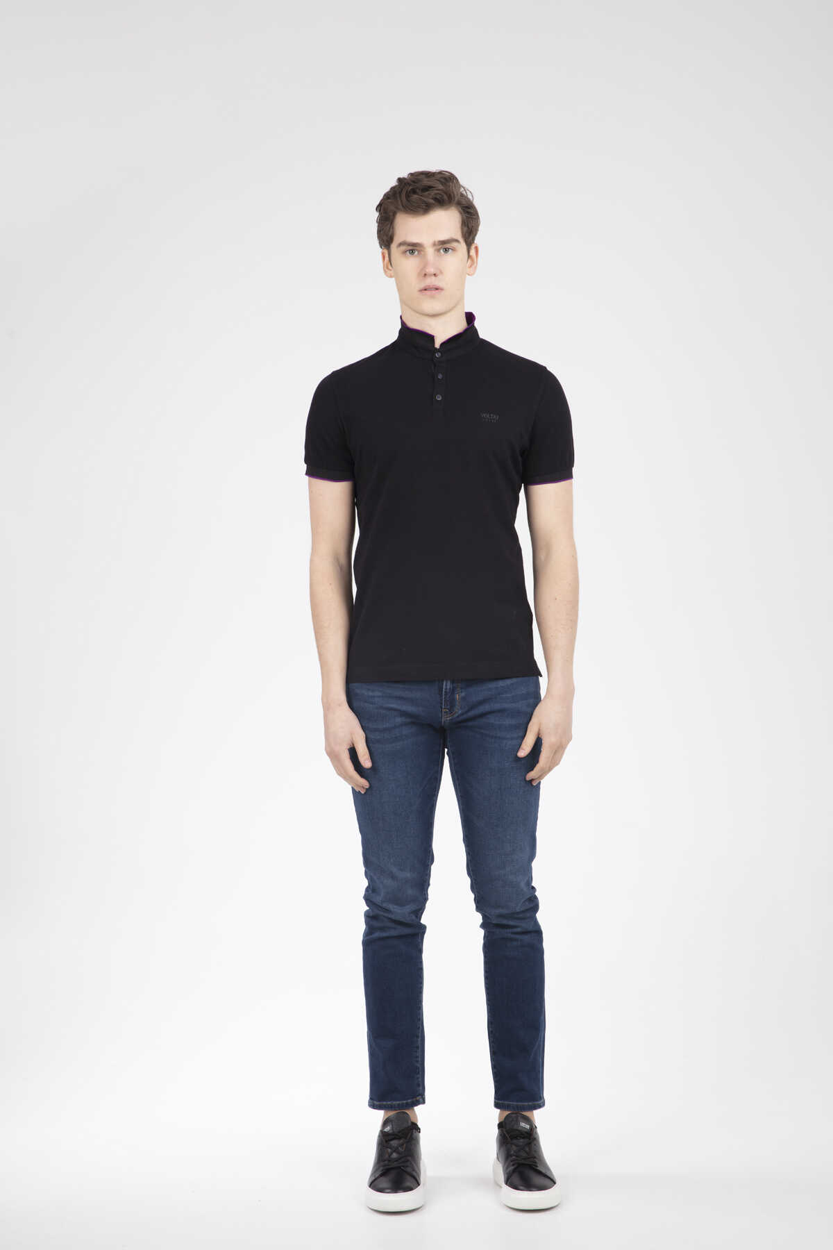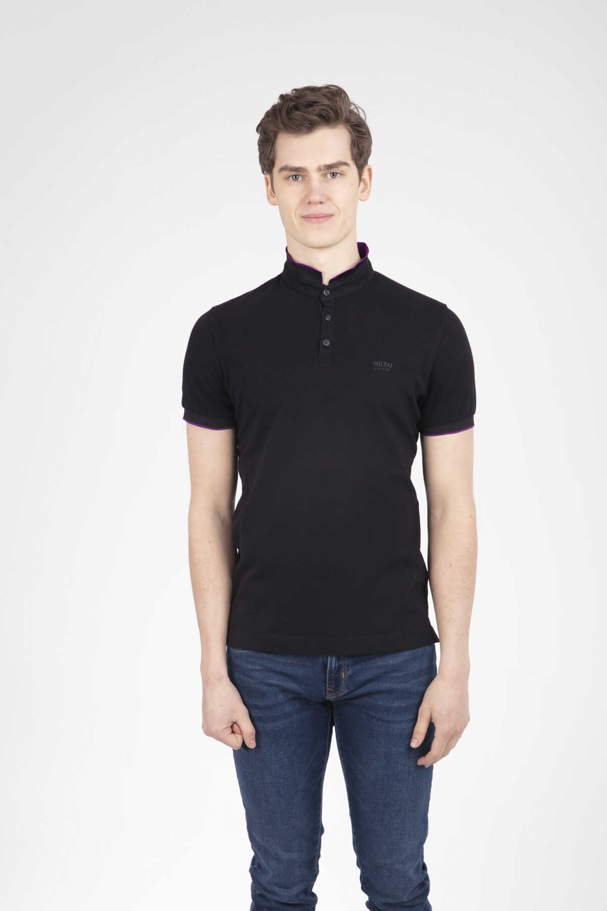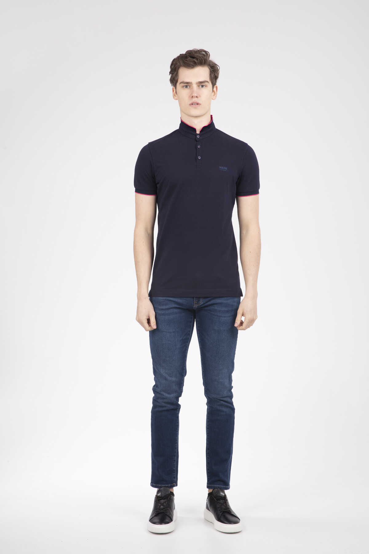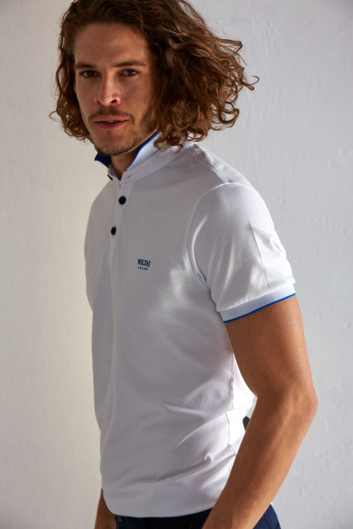 Mandarin Collar Buttoned Pique Men's T-Shirt - 6