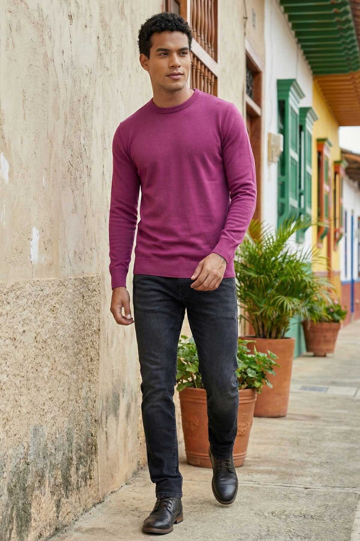 Мужской трикотажный свитер Mateo с круглым вырезом бордовый красный