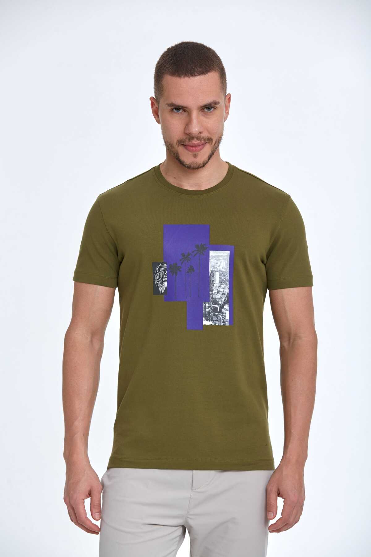 Yazı, denizi, sahili hatırlatan palmiye baskılı erkek tişörtü. Bermuda ve kot pantolonlarla kombinleyebileceğiniz şık bir tasarım. Baskı kalitesi ve renkleriyle oldukça kullanışlı bir tişör. Nefes alabilen kumaş dokusuyla sıcak yaz aylarında kulllanbileceğiniz bir ürün.