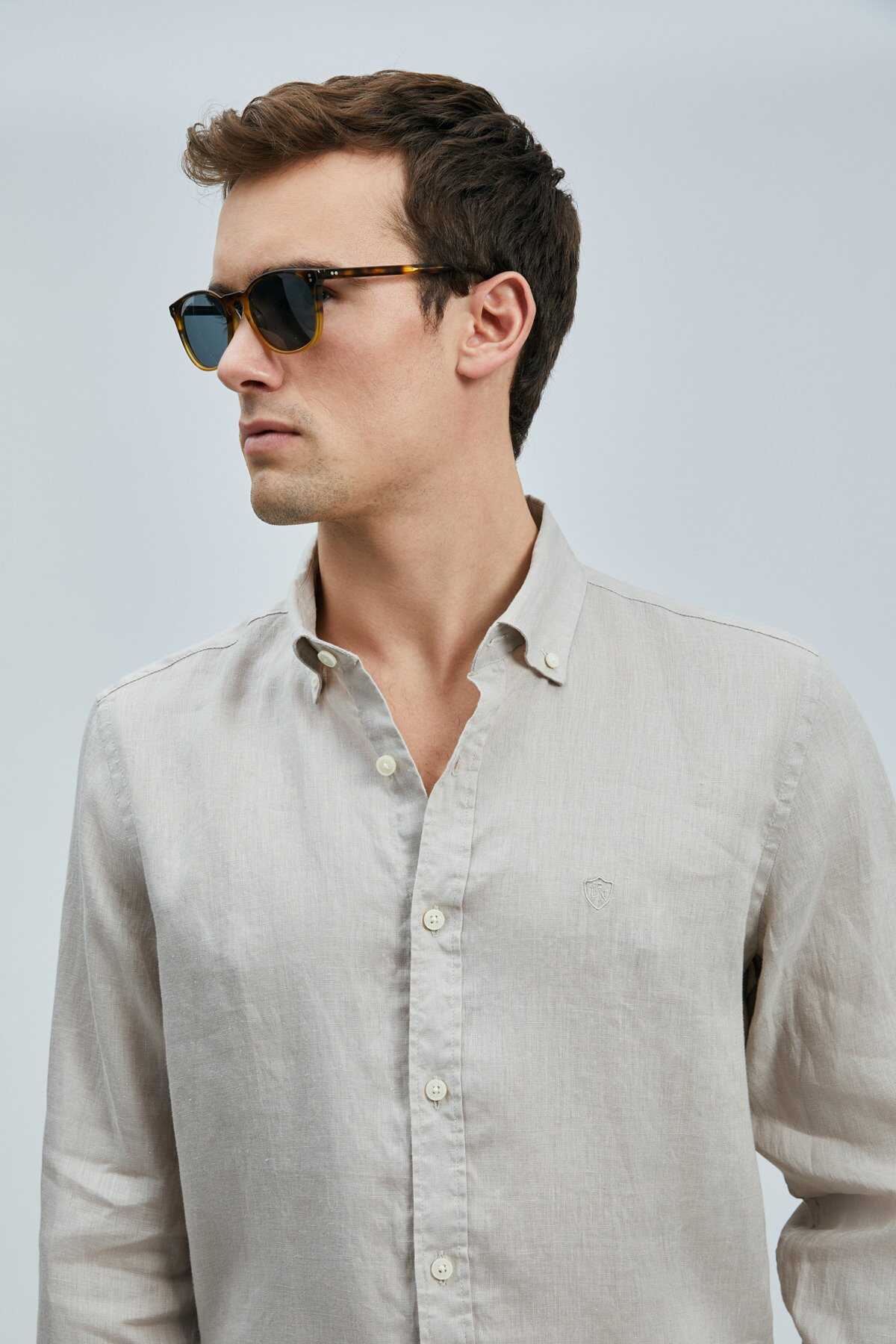 Pitaya Erkek Keten Gömlek Comfort Fit Bej - 1