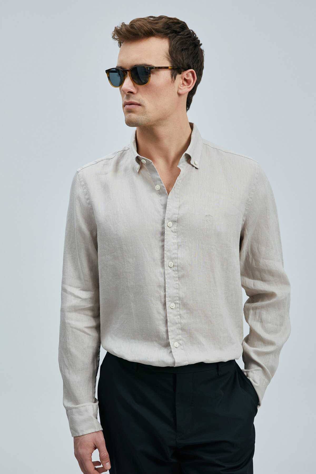 Pitaya Erkek Keten Gömlek Comfort Fit Bej