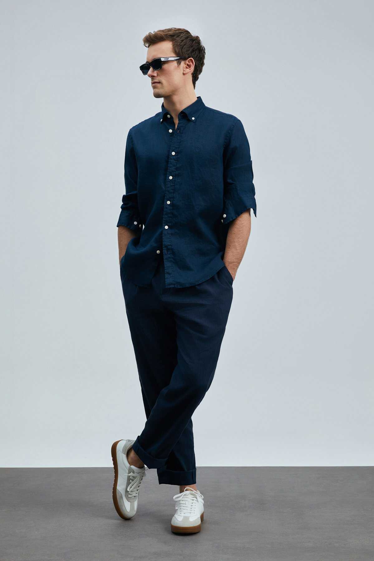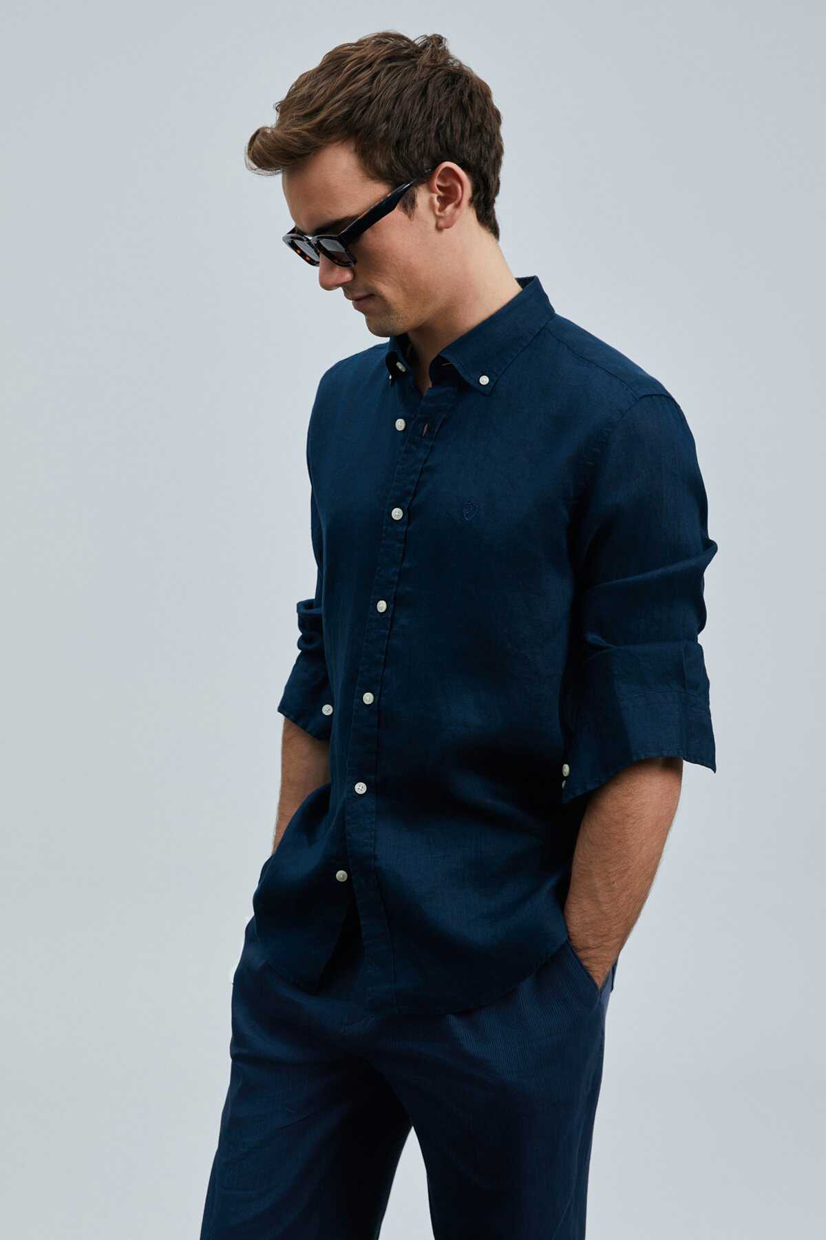 Pitaya Erkek Keten Gömlek Comfort Fit Lacivert