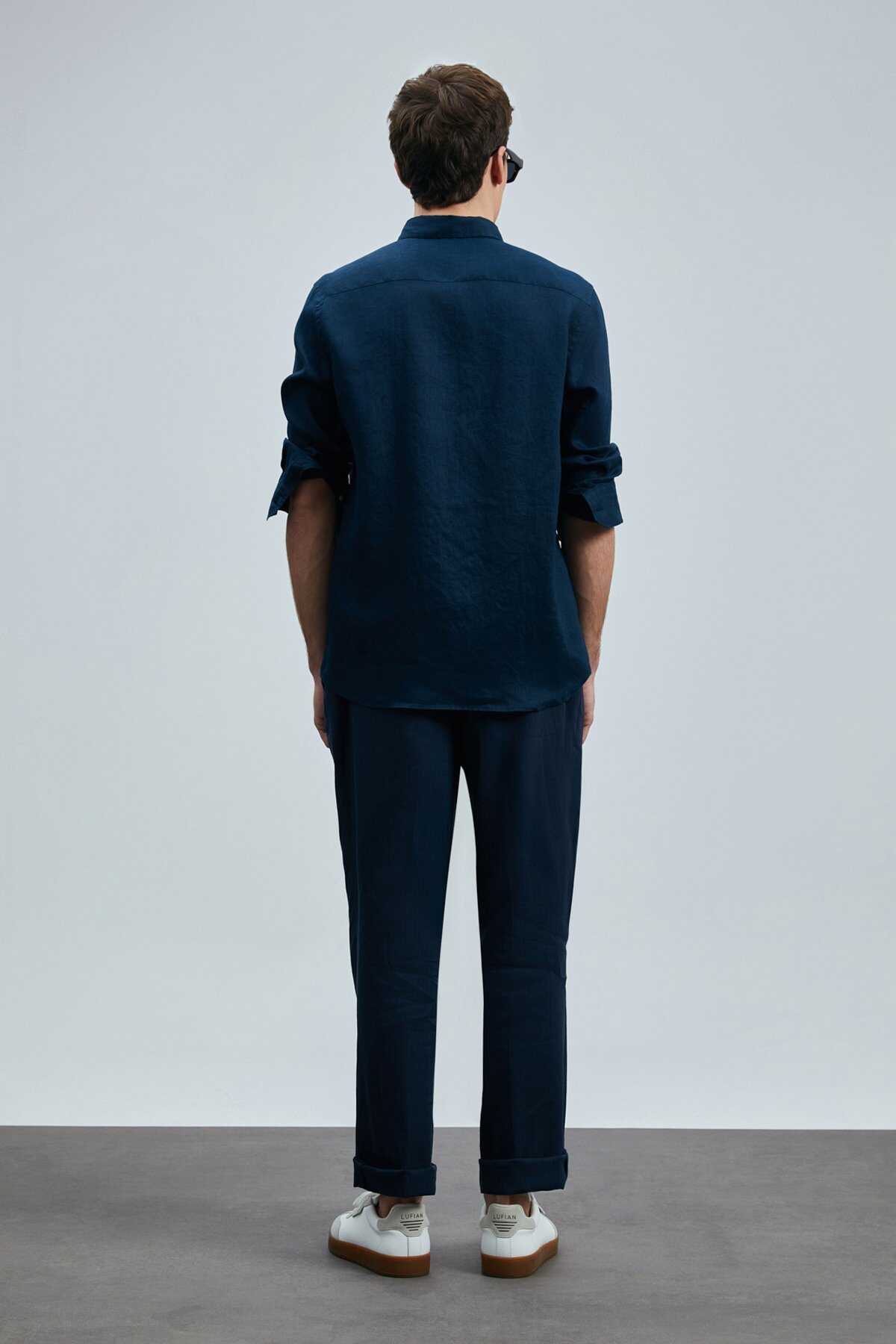 Pitaya Erkek Keten Gömlek Comfort Fit Lacivert - 5