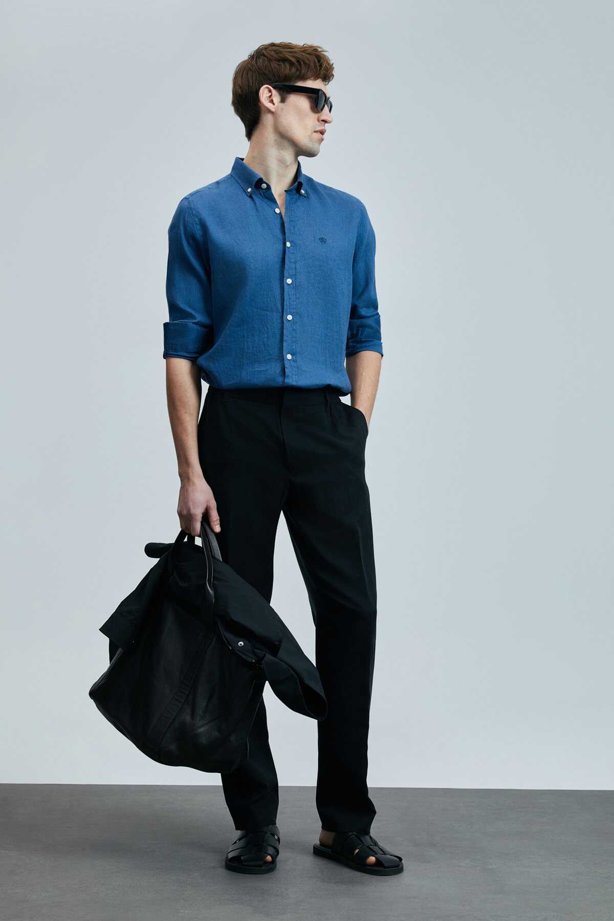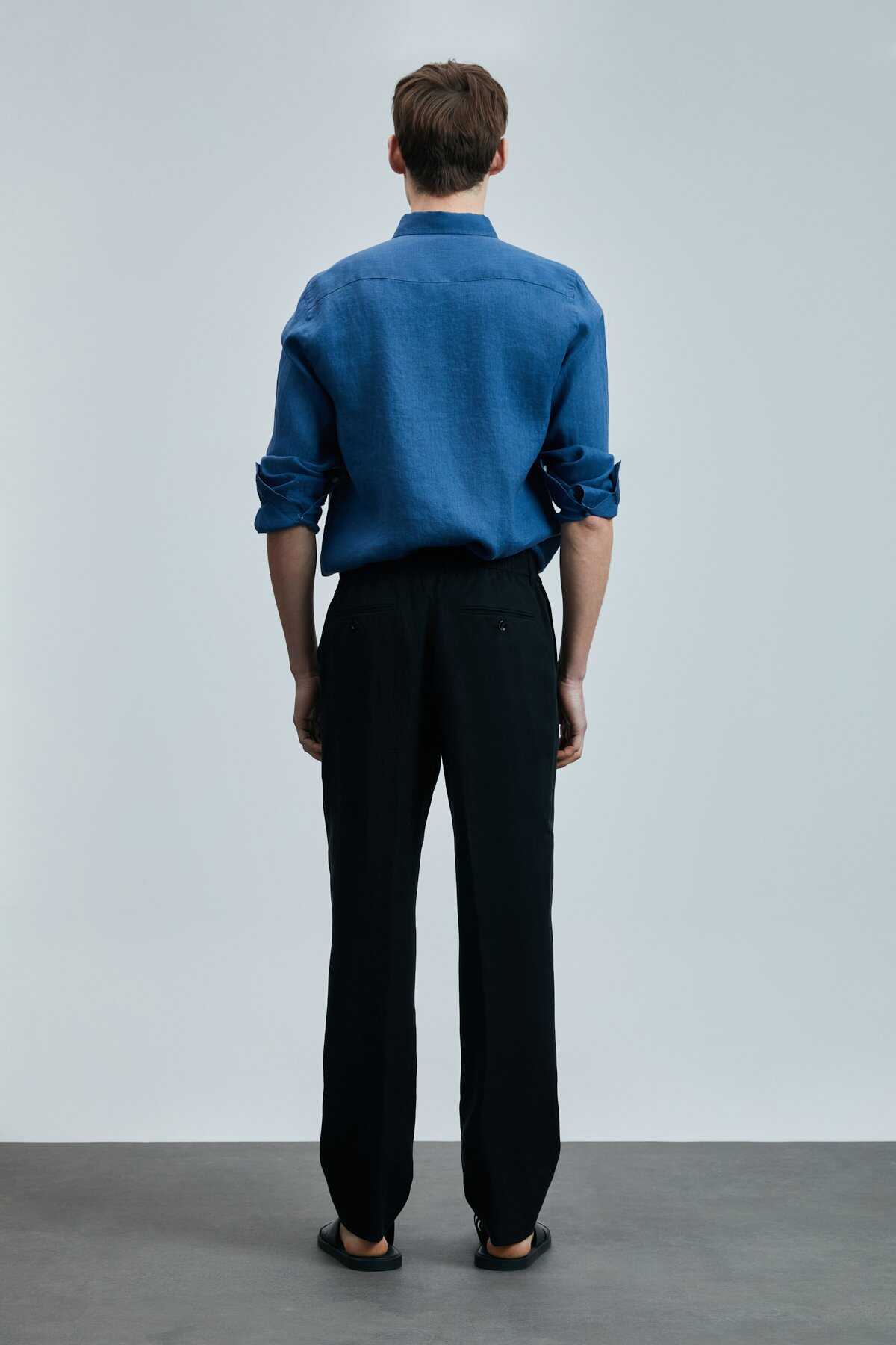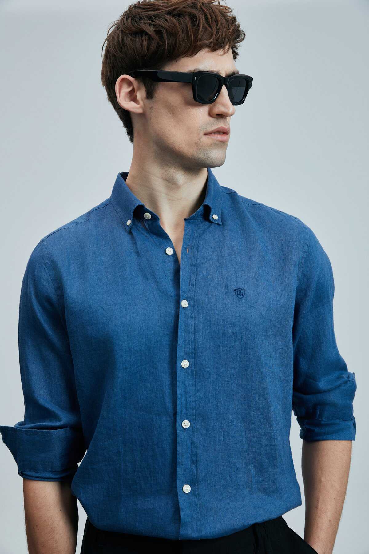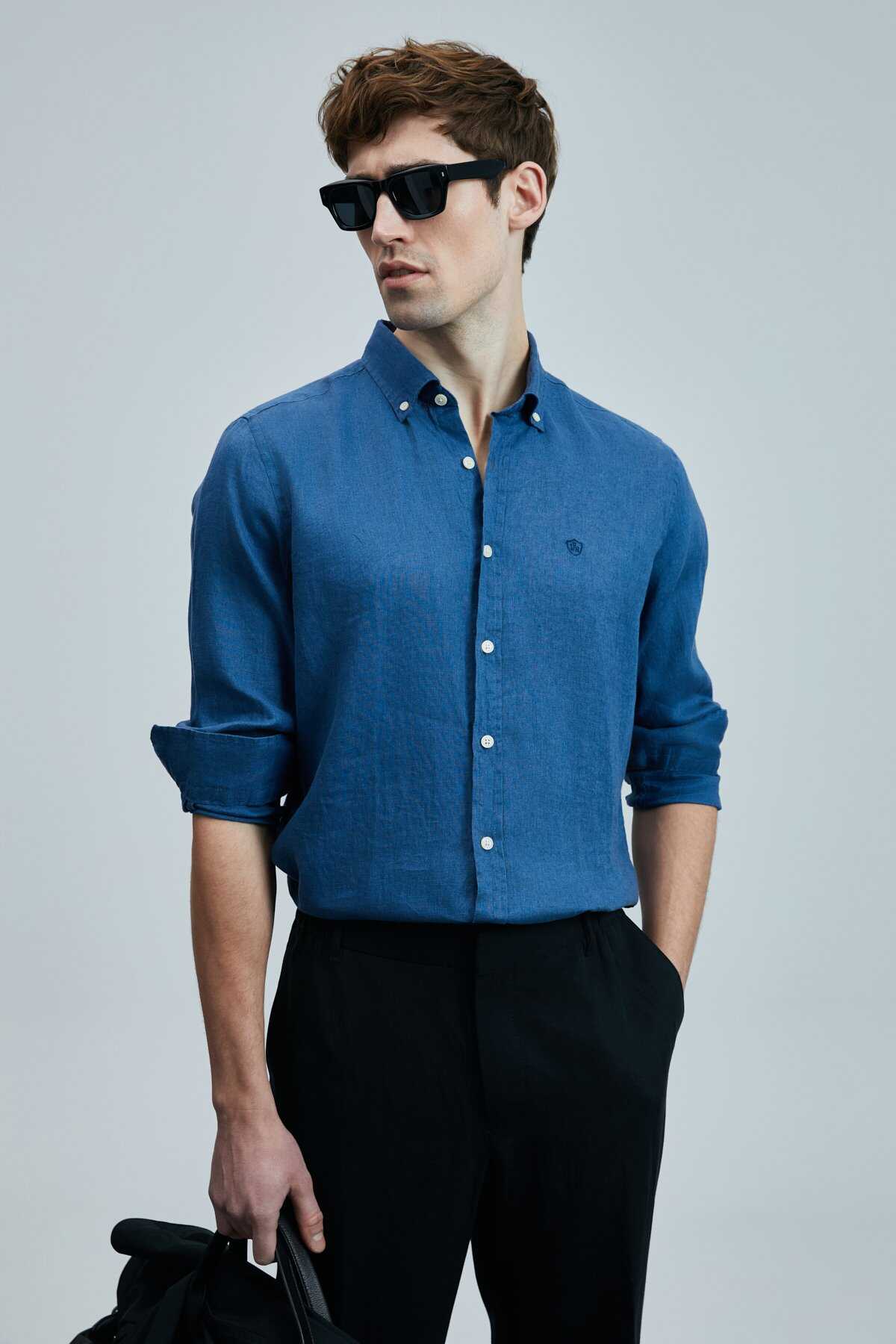 Pitaya Erkek Keten Gömlek Comfort Fit Saks - 5