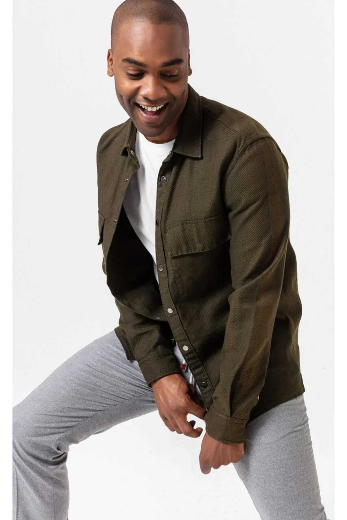Yensi Haki Renk Pamuk Keten Gömlek